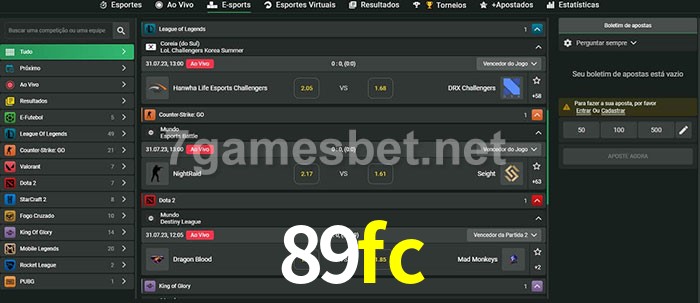 O 89fc oferece uma grande seleção de opções de apostas em e-sports com probabilidades competitivas